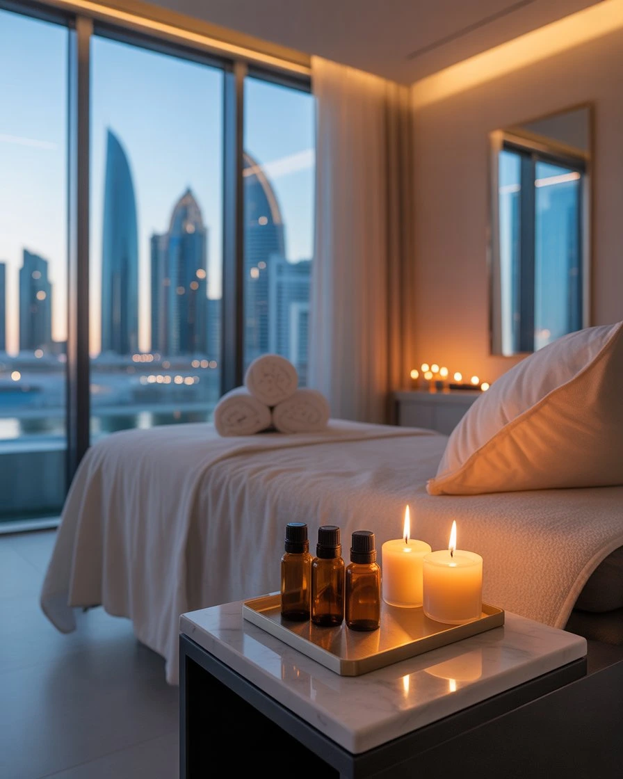 We provide everything needed including the massage bed linens essential oils candles and Calming music creating a complete home Spa Abu Dhabi experience